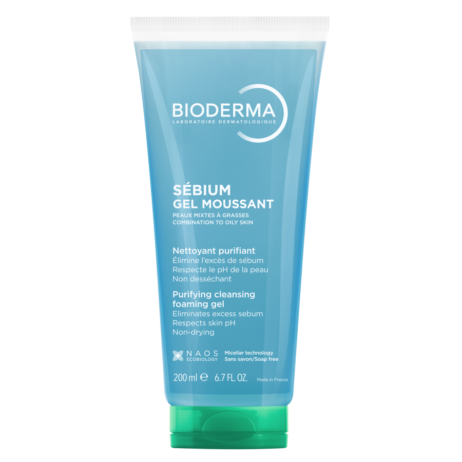 Bioderma Sebium Gel Moussant (Bioderma Себіум Очищуючий Гель) для жирної, комбінованої, проблемної шкіри.Швидко та м'яко очищає шкіру, не викликаючи сухості. Має бактеріостатичну та себорегулюючу дію.Не містить спирту та лугу, не ушкоджує гідроліпідний шар шкіри.Для щоденного очищення:- змішаної, жирної, проблемної шкіри, шкіри схильної до появи вугрів (підходить для зняття макіяжу).- під час дерматологічного лікування, що спричиняє сухість шкіри.- при схильності шкіри до виникнення запальних елементів та фолікулітів (наприклад, після гоління).Не дратує слизову оболонку очей. Добре піниться.· без барвників· без мила· без парабенів· гіпоалергенно· некомедогенно Активні компоненти:· Запатентований компонент Fluidactiv покращує якість себуму (секрет сальних залоз) та запобігає закупорці пір;· Сульфат міді має бактеріостатичну дію і надає приємного світло-блакитного кольору; · Глюконат цинку забезпечує протизапальну та антимікробну дії.